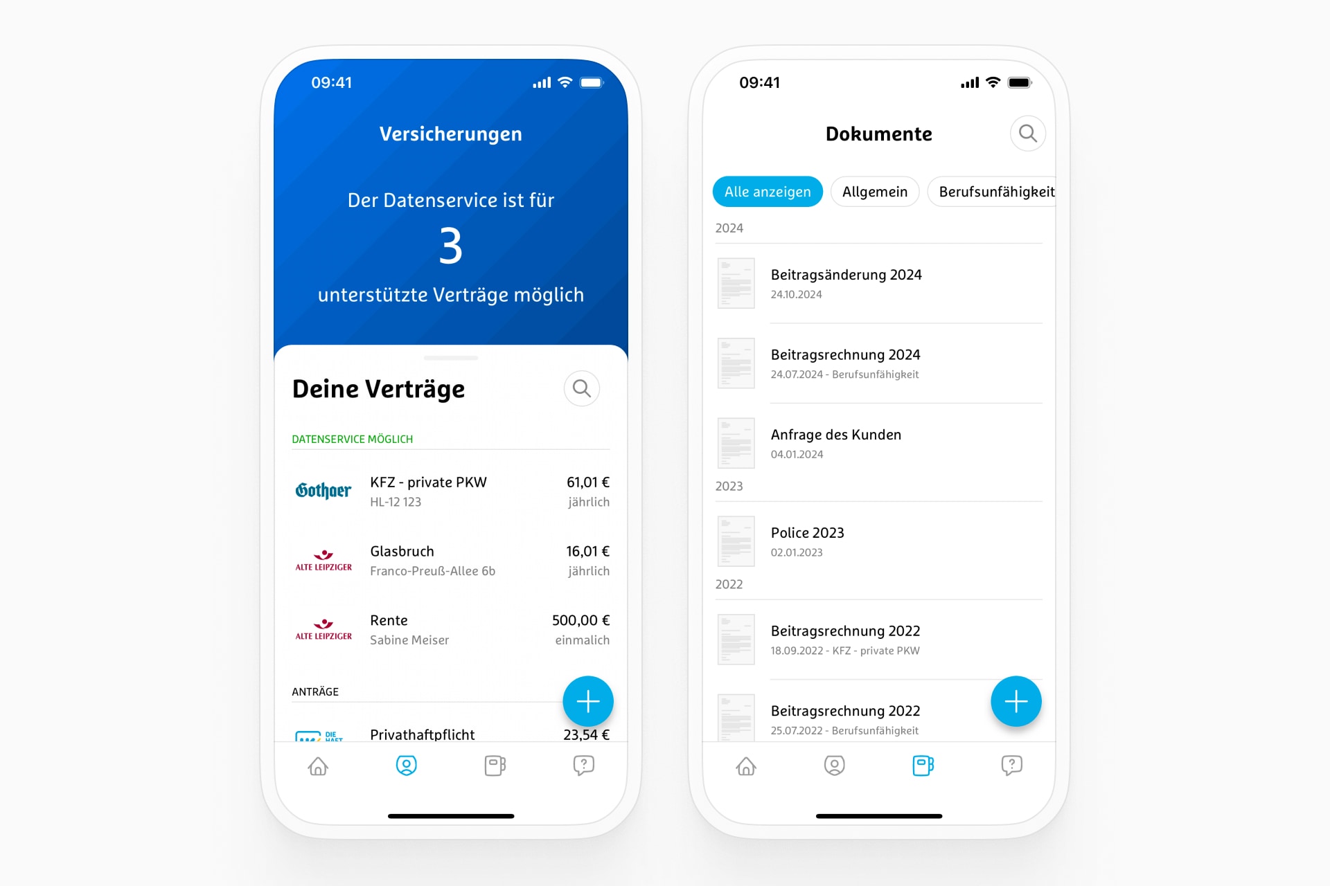 Über die App werden bestehende Policen einfach übertragen und automatisch als neue Verträge im MVP angelegt.