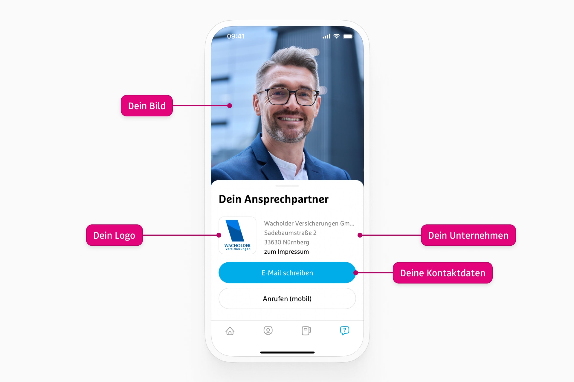Viele Versicherungs-Apps dienen eher dazu, den Makler zu verdrängen. Mit simplr haben wir eine erfolgreiche App am Markt platziert, die den individuellen Makler in den Mittelpunkt stellt. Das eigene Anspechpartnerbild, das Firmenlogo und direkte Kontaktmöglichkeiten sorgen dafür, dass vor allem die Verbindung zwischen Kunde und Makler deutlich gestärkt wird.
